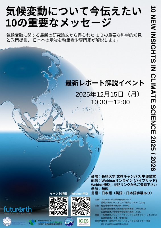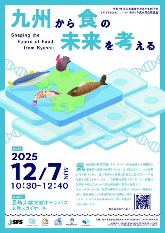 入試情報を知りたい 長崎大学を知りたい 先輩の受験対策、キャンパスライフ卒後の進路 学内トピックス・長崎での生活を知りたい Pick up News すべて 教育・研究 学生活動 社会連携・貢献 受 賞 受 賞 環東シナ海環境資源研究センターのLEEさんが日本水産増殖学会第23回大会にて「学生... 2025.12.02 受 賞 長崎大学広報紙「Choho」が大学広報メディアワード2025金賞(最高位)を受賞 2025.12.01 受 賞 薬学部薬学科の高山理紅さんと木口茜理さんが第42回日本薬学会九州山口支部大会で... 2025.12.01 受 賞 総合生産科学研究科の大浦ひなたさんが第37回日本環境動物昆虫学会年次大会で優秀... 2025.11.28 受 賞 教育学部の大庭伸也准教授が第37回日本環境動物昆虫学会年次大会で学会賞を受賞 2025.11.28 その他 長崎大学オリジナルカレンダー「Fish Calendar 2026」数量限定で発売中 2025.11.28 教育・研究 長崎大学医学研究基金奨学金(NUMF)にてヴュルツブルク大学から研究者を受け入れ... 2025.11.28 教育・研究 釜山大学校医学部から長崎大学医学部への交流強化を目指した訪問がありました 2025.11.27 教育・研究 韓国国立水産科学院との学術交流協定の調印式を実施 2025.11.26 教育・研究 「漁獲データ解析ワークショップ」を開催しました 2025.11.19 教育・研究 ライデン大学との国際連携による若手研究者の着任について 2025.11.18 教育・研究 防災・放射線医学上級研修コースとF-REI国際シンポジウム“Collection and Dissemin... 2025.11.17 学生活動 【長崎大学龍踊部】クラウドファンディングに挑戦中!新しい龍の制作に向けたご支... 2025.11.07 学生活動 現役新聞記者に学ぶ「取材と記事執筆の基本」―学生広報スタッフを対象に講習会を実施― 2025.11.06 学生活動 【長崎大学アーチェリー部】九州新人戦初心者女子の部で1位2位入賞! 2025.11.04 学生活動 #長大生の学園祭:学園祭実行委員長取材 2025.10.31 学生活動 経済学部の学生がグラバー園特別ガイドツアーを行いました 2025.10.31 学生活動 【全学書道部】日台連帯平和祈念揮毫の会に参加しました! 2025.10.29 教育・研究社会連携・貢献 医歯薬学総合研究科 離島・へき地医療学講座の主催で救急車のない離島において救急... 2025.11.14 社会連携・貢献 ながさきピース文化祭2025応援事業「国際学生交流会 夏祭り」を開催 2025.10.31 社会連携・貢献 【公開講座】「長崎の伝統野菜を作ろう~種から考える栽培技術~」第2回の講座を... 2025.10.28 社会連携・貢献 歯学部生による福島県大熊町での口腔ケア支援が行われました 2025.10.08 社会連携・貢献 【公開講座】「長崎の伝統野菜を作ろう~種から考える栽培技術~」第1回の講座を開... 2025.10.01 学生活動社会連携・貢献 ナガサキ・ユース代表団 第14期生が決定 2025.09.30 受 賞 環東シナ海環境資源研究センターのLEEさんが日本水産増殖学会第23回大会にて「学生... 2025.12.02 受 賞 長崎大学広報紙「Choho」が大学広報メディアワード2025金賞(最高位)を受賞 2025.12.01 受 賞 薬学部薬学科の高山理紅さんと木口茜理さんが第42回日本薬学会九州山口支部大会で... 2025.12.01 受 賞 総合生産科学研究科の大浦ひなたさんが第37回日本環境動物昆虫学会年次大会で優秀... 2025.11.28 受 賞 教育学部の大庭伸也准教授が第37回日本環境動物昆虫学会年次大会で学会賞を受賞 2025.11.28 受 賞 生命医科学域(歯学系)歯周歯内治療学分野の尾崎幸生助教がThe 65th General Sess... 2025.11.18 ニュース一覧 プレスリリース一覧 Admission Events 12月4日(木) どなたでも 倉場富三郎の生涯と「日本西部及び南部魚類図鑑」 長崎歴史文化博物館ホール(長崎市立山1丁目1-1) 12月7日(日) どなたでも 市民公開シンポジウム「九州から食の未来を考える」 文教キャンパス 文教スカイホール 12月7日(日) どなたでも 経済学部「片淵祭」 片淵キャンパス 12月7日(日) どなたでも J-PEAKS 西南九州地区3大学合同キックオフシンポジウム「プラネタリーヘルスの実現に向けた3大学の連携」 文教キャンパス 中部講堂 12月7日(日) どなたでも CGR主催イベント「わたしの食事・わたしの健康・地球の健康」 イオンモール福津(福岡県福津市日蒔野6丁目16−1) 12月12日(金) 多文化社会学部に関心のある方、入学を考えている方 多文化社会学部 2025年冬期進学説明会【長崎開催】 文教キャンパス 総合教育研究棟 12月13日(土) 高校生、高専生、大学生、大学院生、一般個人、企業、団体等 第108回 海洋教育フォーラム 浮体式洋上風力は、今、どこまで来ているのか? ~世界と日本の動き、そして私たちの未来~ 出島メッセ長崎(長崎市尾上町4-1) 12月13日(土) どなたでも 戦後80年記念講演「アメリカの日系人強制収容所における日本人の抵抗・誇り・そして文化の表現」 出島メッセ長崎(長崎市尾上町4-1) 12月14日(日) どなたでも 「地域の食から育むプラネタリーヘルス」~食べて、学んで、つながる一日! 長崎大学で始まる“食”の挑戦~ 文教キャンパス 文教スカイホール・キャンパスモール 12月14日(日) どなたでも 市民公開講座「戦後80年の長崎から考える女性の活躍」 文教キャンパス 中部講堂 12月14日(