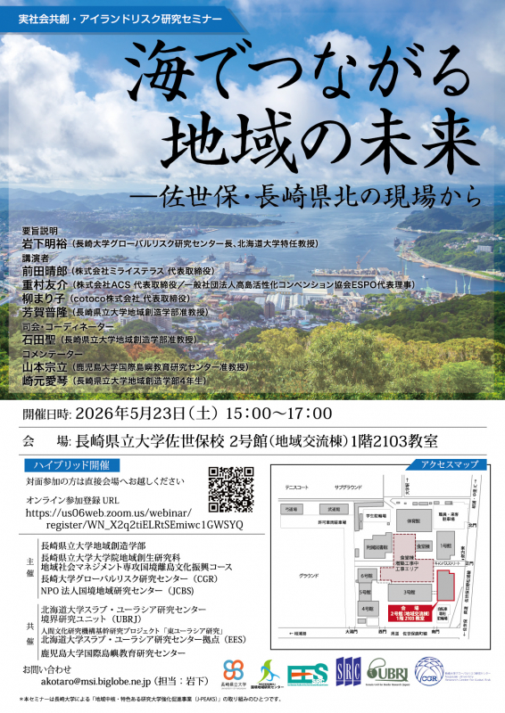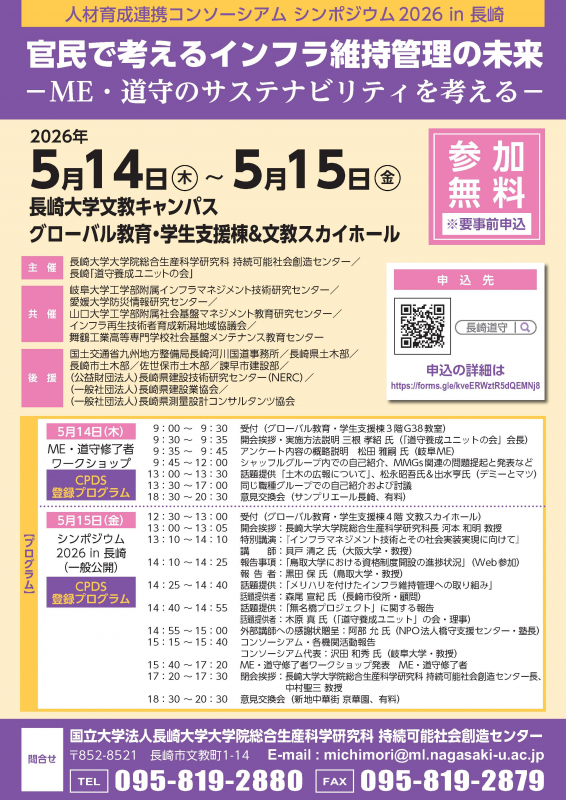 入試情報を知りたい 長崎大学を知りたい 先輩の受験対策、キャンパスライフ卒後の進路 学内トピックス・長崎での生活を知りたい Pick up News すべて 教育・研究 学生活動 社会連携・貢献 受 賞 社会連携・貢献 ナガサキ・ユース代表団第14期生が永安学長を表敬訪問 2026.04.22 教育・研究 「原子力災害後の復興に向けた包括的かつ持続可能なリスクガバナンス(An Inclusiv... 2026.04.21 その他 「西遊基金」の寄附者芳名録を掲載しました(令和8年3月) 2026.04.21 教育・研究 CLiP細胞を用いた肝臓再生医療の臨床研究に関する記者会見を開催 2026.04.20 トピックス アントワープ熱帯医学研究所所長 Dr. Özge Tunçalp 氏が本学を訪問 2026.04.20 受 賞 医歯薬学総合研究科の信國愛菜さんが日本薬学会第146年会学生優秀発表賞(口頭発表... 2026.04.20 教育・研究 「原子力災害後の復興に向けた包括的かつ持続可能なリスクガバナンス(An Inclusiv... 2026.04.21 教育・研究 CLiP細胞を用いた肝臓再生医療の臨床研究に関する記者会見を開催 2026.04.20 教育・研究 グローバルリスク研究センターの展望 岩下センター長に聞く 2026.04.13 教育・研究 【公開講座】「地域の農業から学ぶ栽培技術~高糖度トマトとその作り方~」第1回を... 2026.04.09 教育・研究 医歯薬学総合研究科博士課程修了生Dr. Altay Myssayev氏(バルセロナ国際保健研究... 2026.04.01 教育・研究 令和7年度医学部医学科退職教授記念講演会を開催 2026.03.31 学生活動 #長大生の日常:大学生の春休み ―経済学部生編― 2026.03.31 学生活動 #長大生の日常:大学生の春休み ―情報データ科学部生編― 2026.03.27 学生活動 #長大生の日常:私の推し講義 2026.03.03 学生活動 #長大生の学園祭:学園祭運営委員会幹部が語る学園祭の舞台裏 2026.01.16 学生活動 【長崎大学龍踊部】クラウドファンディングに挑戦中!新しい龍の制作に向けたご支... 2025.11.07 学生活動 現役新聞記者に学ぶ「取材と記事執筆の基本」―学生広報スタッフを対象に講習会を実施― 2025.11.06 社会連携・貢献 ナガサキ・ユース代表団第14期生が永安学長を表敬訪問 2026.04.22 社会連携・貢献 長崎大学が後援している海きらら春の特別展「THE・サメ展」が開催中 ~永安 武... 2026.04.09 社会連携・貢献 経済学部の学生が、資源循環企業の社会的価値を高める取り組みを提案 2026.03.13 社会連携・貢献 学生とエンジニアが「テクノロジーとキャリア」を語る 「Tech BAR @NUTIC supporte... 2026.01.09 社会連携・貢献 長崎大学と共立メンテナンスが業務提携を締結 ~安心・快適な学生生活をサポート~ 2026.01.09 社会連携・貢献 国際学生交流会「ふれあいお正月」を開催 2025.12.23 受 賞 医歯薬学総合研究科の信國愛菜さんが日本薬学会第146年会学生優秀発表賞(口頭発表... 2026.04.20 受 賞 医歯薬学総合研究科の舟木真梨子さんが第21回九州矯正歯科学会学術大会にて「優秀... 2026.04.08 受 賞 「第3回事務部門におけるDX推進賞表彰式」を実施 2026.03.26 受 賞 医歯薬学総合研究科の芦澤香子さんが第103回日本生理学会大会でPhysiological Repo... 2026.03.26 受 賞 長崎大学ロケットサークルNUSEが大会最高賞(日本一!)に輝く 第22回種子島ロケッ... 2026.03.23 受 賞 第8回保健システムグローバルシンポジウム(HSR2024)「国際会議開催貢献賞」受賞... 2026.03.23 ニュース一覧 プレスリリース一覧 Admission Events 4月23日(木) 本学の学生 【広報戦略本部】学生広報スタッフ説明会 文教キャンパス 中央図書館 地下1階多目的ルーム 3月23日(月)~5月10日(日) 小学5年生~中学3年生 令和8年度 長崎大学ジュニアドクター育成塾 基礎コース受講生募集 文教キャンパス 4月24日(金) どなたでも EES/CGR共創研究セミナー「暗殺された政治指導者はどのように記念されるか?キーロフをめぐる都市・ジェンダー・戦争」 北海道大学スラブ・ユーラシア研究センター/オンライン 4月24日(金)~6月14日(日) 高校生、既卒者、学校関係者、保護者等 多文化社会学部進学説明会(九州エリア) 文教キャンパス他 九州エリア5か所 5月15日(金) インフラの維持管理に係る国県市町村の担当者、民間企業の技術者及び大学関係者 人材育成連携コンソーシアム シンポジウム2026 in長崎「官民で考えるインフラ維持管理の未来‐ME・道守のサステナビリティを考える‐」 文教キャンパス 文教スカイホール 5月23日(土) どなたでも 実社会共創・アイランドリスク研究セミナー「海でつながる地域の未来―佐世保・長崎県北の現場から」 長崎県立大学佐世保校(佐世保市川下町123) 5月23日(土)~24日(日) どなたでも 第57回 水産学部 学部祭『鴻洋祭』 長崎大学文教キャンパス 水産学部棟、中部講堂前、グリーンベルトその周辺 4月23日(木) 本学の学生 【広報戦略本部】学生広報スタッフ説明会 文教キャンパス 中央図書館 地下1階多目的ルーム 3月23日(月)~5月10日(日) 小学5年生~中学3年生 令和8年度 長崎大学ジュニアドクター育成塾 基礎コース受講生募集 文教キャンパス 4月24日(金) どなたでも EES/CGR共創研究セミナー「暗殺された政治指導者はどのように記念されるか?キーロフをめぐる都市・ジェンダー・