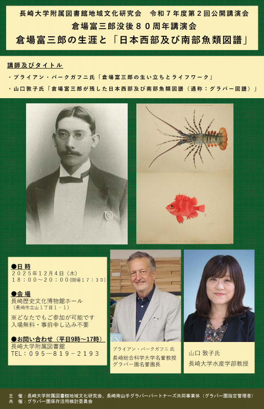 入試情報を知りたい 長崎大学を知りたい 先輩の受験対策、キャンパスライフ卒後の進路 学内トピックス・長崎での生活を知りたい Pick up News すべて 教育・研究 学生活動 社会連携・貢献 受 賞 教育・研究 「漁獲データ解析ワークショップ」を開催しました 2025.11.19 受 賞 生命医科学域(歯学系)歯周歯内治療学分野の尾崎幸生助教がThe 65th General Sess... 2025.11.18 受 賞 医歯薬学総合研究科の松川萌さんが第98回日本生化学会大会で「若手優秀発表賞」を受賞 2025.11.18 教育・研究 ライデン大学との国際連携による若手研究者の着任について 2025.11.18 その他 「西遊基金」の寄附者芳名録を掲載しました(クラウドファンディング) 2025.11.17 その他 「西遊基金」の寄附者芳名録を掲載しました(令和7年10月) 2025.11.17 教育・研究 「漁獲データ解析ワークショップ」を開催しました 2025.11.19 教育・研究 ライデン大学との国際連携による若手研究者の着任について 2025.11.18 教育・研究 防災・放射線医学上級研修コースとF-REI国際シンポジウム“Collection and Dissemin... 2025.11.17 教育・研究社会連携・貢献 医歯薬学総合研究科 離島・へき地医療学講座の主催で救急車のない離島において救急... 2025.11.14 教育・研究 第10回日本-台湾薬学ジョイントシンポジウムに参加 2025.11.11 教育・研究 福島国際研究教育機構(F-REI)のF-REI国際シンポジウム“Collection and Dissemina... 2025.11.07 学生活動 【長崎大学龍踊部】クラウドファンディングに挑戦中!新しい龍の制作に向けたご支... 2025.11.07 学生活動 現役新聞記者に学ぶ「取材と記事執筆の基本」―学生広報スタッフを対象に講習会を実施― 2025.11.06 学生活動 【長崎大学アーチェリー部】九州新人戦初心者女子の部で1位2位入賞! 2025.11.04 学生活動 #長大生の学園祭:学園祭実行委員長取材 2025.10.31 学生活動 経済学部の学生がグラバー園特別ガイドツアーを行いました 2025.10.31 学生活動 【全学書道部】日台連帯平和祈念揮毫の会に参加しました! 2025.10.29 教育・研究社会連携・貢献 医歯薬学総合研究科 離島・へき地医療学講座の主催で救急車のない離島において救急... 2025.11.14 社会連携・貢献 ながさきピース文化祭2025応援事業「国際学生交流会 夏祭り」を開催 2025.10.31 社会連携・貢献 【公開講座】「長崎の伝統野菜を作ろう~種から考える栽培技術~」第2回の講座を... 2025.10.28 社会連携・貢献 歯学部生による福島県大熊町での口腔ケア支援が行われました 2025.10.08 社会連携・貢献 【公開講座】「長崎の伝統野菜を作ろう~種から考える栽培技術~」第1回の講座を開... 2025.10.01 学生活動社会連携・貢献 ナガサキ・ユース代表団 第14期生が決定 2025.09.30 受 賞 生命医科学域(歯学系)歯周歯内治療学分野の尾崎幸生助教がThe 65th General Sess... 2025.11.18 受 賞 医歯薬学総合研究科の松川萌さんが第98回日本生化学会大会で「若手優秀発表賞」を受賞 2025.11.18 受 賞 医歯薬学総合研究科 卓越若手教員・大学院生の長野敏樹さんが第54回日本口腔インプ... 2025.11.17 受 賞 医歯薬学総合研究科の大貝洋一郎さんが日本バイオマテリアル学会2025年度九州ブロ... 2025.11.13 受 賞 総合生産科学研究科の角田小桜さんが第16回触媒科学研究発表会において優秀ポスタ... 2025.11.05 受 賞 総合生産科学研究科の後藤龍也さんがアジア水産音響学会(AFAS)で「学生最優秀発... 2025.11.05 ニュース一覧 プレスリリース一覧 Admission Events 11月22日(土) どなたでも 乳幼児から高齢者までの睡眠・覚醒から考える人生設計 坂本キャンパス 医学部良順会館 11月24日(月) 環境科学部に関心のある方、入学を考えている方 環境科学部オンライン説明会 オンライン配信(Teams) 11月25日(火) どなたでも 多文化社会学部・グローバルリスク研究センター 一般公開セミナー「気候変動に関する国際司法裁判所(ICJ)の勧告的意見:楽観論、悲観論、懐疑論」 文教キャンパス 総合教育研究棟 11月26日(水) 本学の教職員、学生 【長崎大学SD】令和7年度 メンタルヘルス講演会 文教キャンパス 文教スカイホール 11月28日(金) どなたでも(中学生以上) 市民公開講座「長崎から考える感染症とワクチンのいま—ワクチンで防げる病気と、私たちにできること」 坂本キャンパス 医学部記念講堂 11月16日(日)~30日(日) どなたでも(受講条件あり) 令和8年度子どもの心の支援にかかわる高度人材育成プログラム受講者募集 オンライン 11月11日(火)~2月3日(火) 大学生・大学院生 第2回データ分析ハッカソン 長崎大学文教キャンパス 11月30日(日) どなたでも 小学校外国語教科化の成果と課題 -次期学習指導要領改訂の視点とは- 文教キャンパス 文教スカイホール 12月4日(木) どなたでも 倉場富三郎の生涯と「日本西部及び南部魚類図鑑」 長崎歴史文化博物館ホール(長崎市立山1丁目1-1) 12月5日(金) 情報系スキルのある方 「長崎データ塾」塾生募集・キックオフイベント 長崎スタジアムシティ ノース棟10F(長崎市幸町7-1) 12月5日(金) どなたでも 令和7年度 成長産業連携セミナー「長崎県の次世代海洋産業とロボティクス」 文教キャンパス 文
