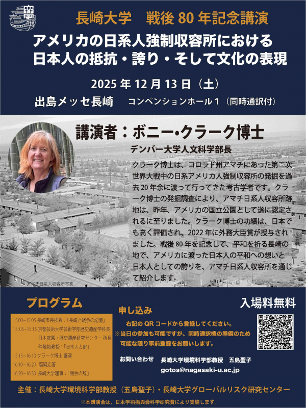 戦後80年記念講演「アメリカの日系人強制収容所における日本人の抵抗・誇り・そして文化の表現」
