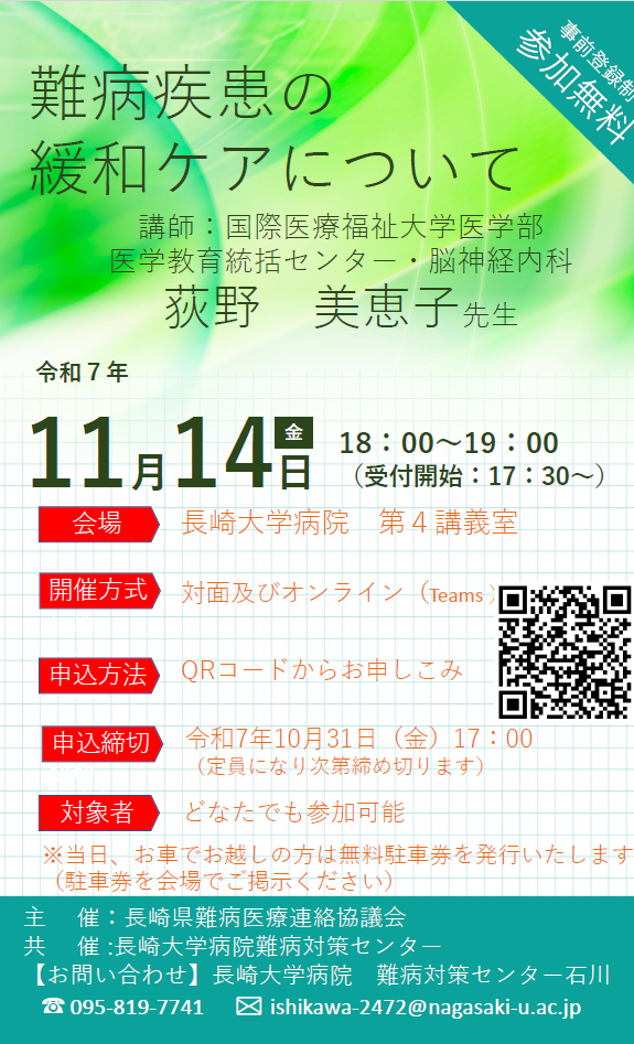 本講演は、ALSの在宅診療や、がん以外の緩和ケアを深く学ぶことができる貴重な機会です。どなたでもご参加いただけますので、ぜひ多くの皆さまのご参加をお待ちしております。