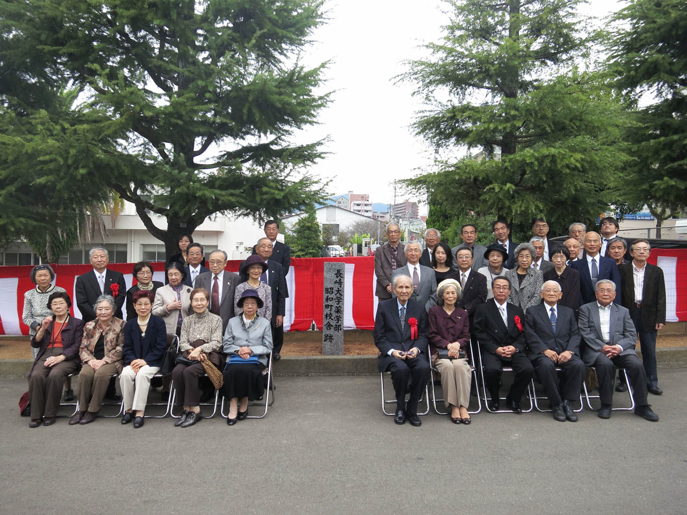 長崎大学薬学部は11月7日、「長崎大学薬学部創立125周年記念式典」を長崎市内ANAクラウンプラザホテル長崎グラバーヒルで挙行しました。記念式典では、内外関係者約200名が出席して節目を祝いました。 同学部は、明治23年(1890年)に創立された第五高等中学校医学部薬学科を起点として、今年、創立125周年を迎え、その歴史の中では、ノーベル化学賞を受賞された下村脩名誉博士を筆頭に多くの優秀な人材を輩出してきました。 式典当日午前には長崎大学教育学部附属小学校において、新たに建立した長崎大学薬学部昭和町校舎記念碑の除幕式を執り行いました。午後の記念式典では、黒田直敬薬学部長の式辞の後、片峰茂学長、山中國暉長薬同窓会会長、下村脩名誉博士の挨拶を頂戴し、続いて寺門成真文部科学省高等教育局医学教育課長、太田茂日本薬学会会頭、山本信夫日本薬剤師会会長、佐藤博日本病院薬剤師会副会長から祝辞が述べられました。 式典後の祝賀会は、七種均長薬同窓会副会長からの目録贈呈、同窓生一同による校歌斉唱の後、古川淳名誉教授の乾杯発声を起に祝宴が始まり、宴たけなわの中、籠町龍踊保存会による勇壮な龍踊りが披露されると、会場はアンコールを意味する「持ってこーい」の掛け声に満たされました。最後は、西脇金一郎長薬同窓会元会長の万歳三唱により閉会となりました。