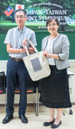 本学中嶌さんから台湾側学生へのお土産の贈呈 |