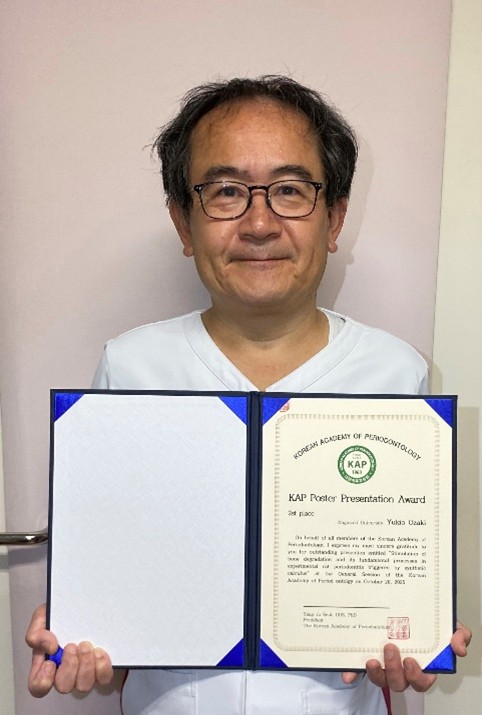 同賞は、Korean Academy of Periodontolgyにより国際セッションにおける学問的および臨床的に優れたポスター発表が選出され、授与されるものです。