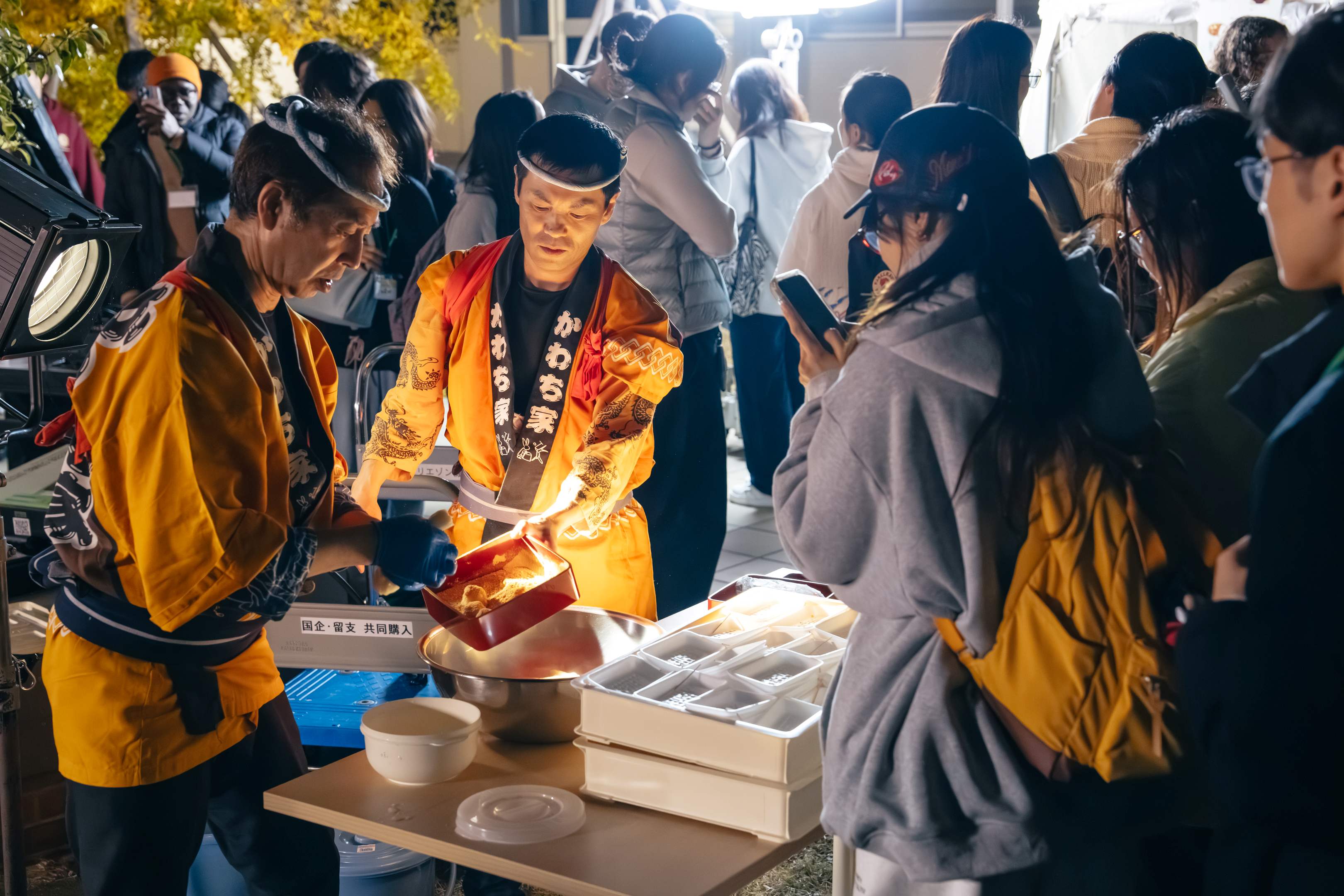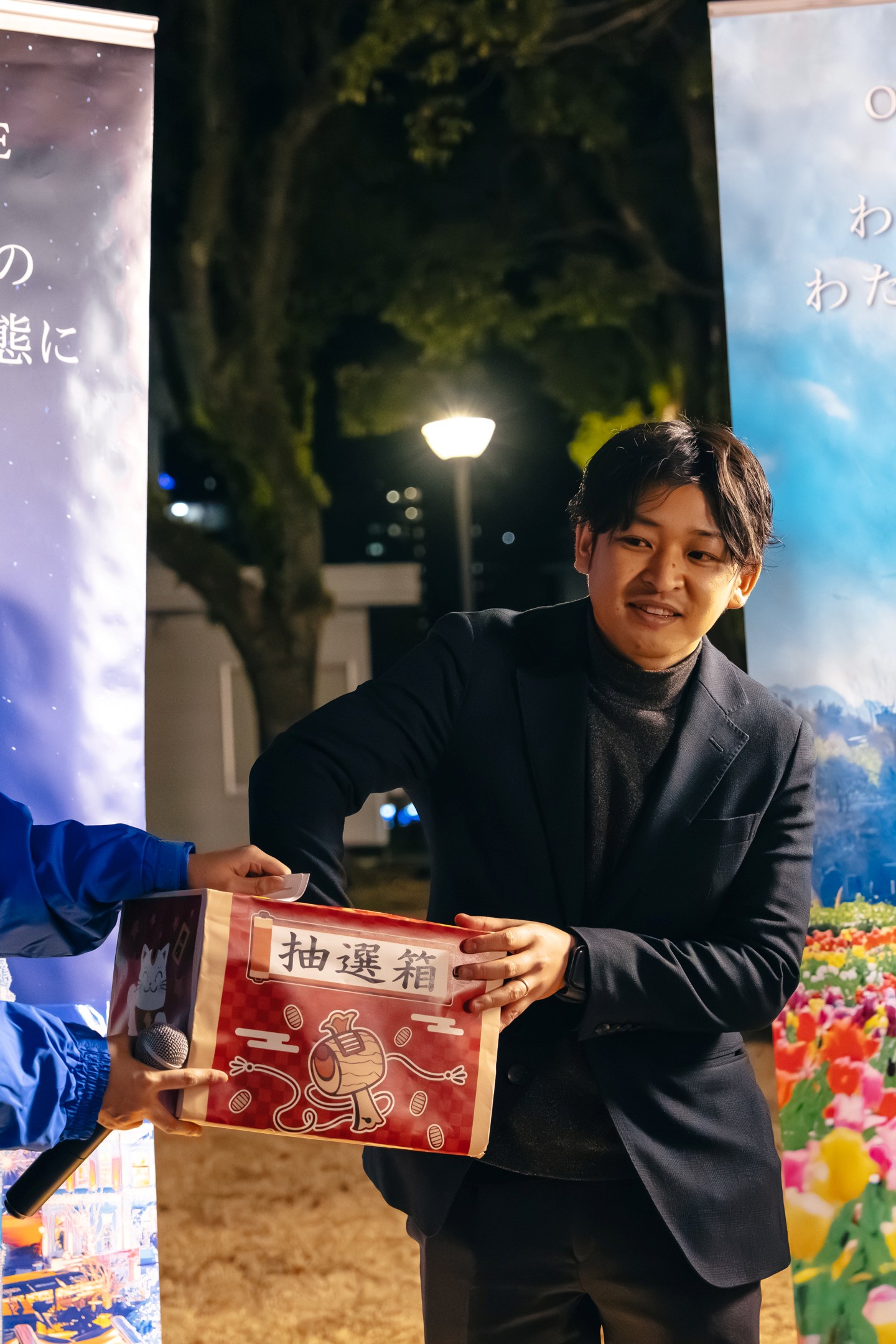 会場では西遊基金のご支援により、雑煮や年越しそばなどの日本のお正月料理が学生に無料で提供され、ハウステンボスの宿泊券や入場券が当たる抽選会も実施されるなど、大いに盛り上がる交流会となりました。
