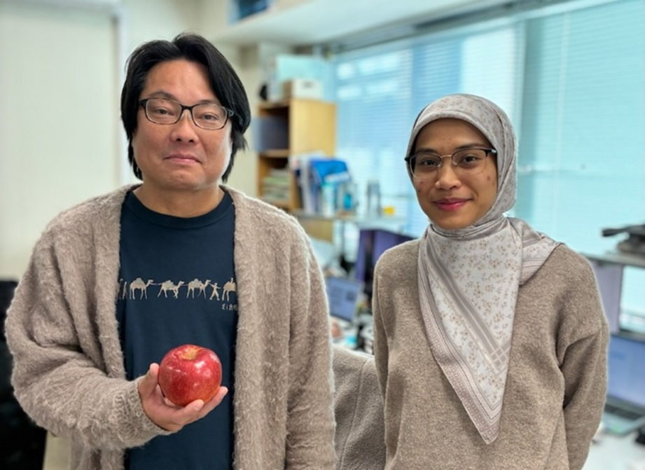 写真3. 八木光晴准教授(左)とSiti Syazwani Azmi(シティ シャズワニ アズミ)さん(右) |