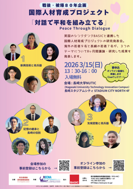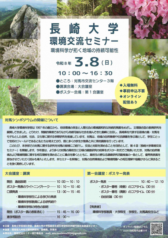 入試情報を知りたい 長崎大学を知りたい 先輩の受験対策、キャンパスライフ卒後の進路 学内トピックス・長崎での生活を知りたい Pick up News すべて 教育・研究 学生活動 社会連携・貢献 受 賞 受 賞 総合生産科学研究科の韓程燕助教が「令和7年度日本水産学会・水産学奨励賞」を受賞 2026.02.19 受 賞 総合生産科学研究科の韓程燕助教と共著者が「令和7年度日本水産学会論文賞」を受賞 2026.02.19 教育・研究 経済学部の学生たちが在来種野菜を未来につなぐ絵本「おもいをつなぐたね」を出版... 2026.02.18 トピックス ボリビアの医師2名が長崎大学病院での研修終了にあたり永安学長を表敬訪問 2026.02.18 社会連携・貢献 本学死因究明医育成センターの荒木技能補佐員および濱田技能補佐員に長崎県警察本... 2026.02.17 受 賞 第8回保健システム研究グローバルシンポジウムが「2025年度国際会議誘致・開催貢献... 2026.02.16 教育・研究 経済学部の学生たちが在来種野菜を未来につなぐ絵本「おもいをつなぐたね」を出版... 2026.02.18 教育・研究 文教キャンパスにてキャンパスのプラネタリーヘルス再発見プロジェクトを開催 2026.02.13 教育・研究 本学博士課程修了生のEl-Maghrabey准教授(エジプト・マンスーラ大学)を迎え、国... 2026.02.04 教育・研究 実海域技術開発研究推進センター開所式を開催 ~長崎大学のロボット研究技術を実海... 2026.01.27 教育・研究 第2回CGR国際シンポジウム 動画公開のお知らせ 2026.01.27 教育・研究 ジュニアドクター育成塾マスターコース受講生の小川明哩さんが2025年度九州知的財... 2026.01.27 学生活動 #長大生の学園祭:学園祭運営委員会幹部が語る学園祭の舞台裏 2026.01.16 学生活動 【長崎大学龍踊部】クラウドファンディングに挑戦中!新しい龍の制作に向けたご支... 2025.11.07 学生活動 現役新聞記者に学ぶ「取材と記事執筆の基本」―学生広報スタッフを対象に講習会を実施― 2025.11.06 学生活動 【長崎大学アーチェリー部】九州新人戦初心者女子の部で1位2位入賞! 2025.11.04 学生活動 #長大生の学園祭:学園祭実行委員長取材 2025.10.31 学生活動 経済学部の学生がグラバー園特別ガイドツアーを行いました 2025.10.31 社会連携・貢献 学生とエンジニアが「テクノロジーとキャリア」を語る 「Tech BAR @NUTIC supporte... 2026.01.09 社会連携・貢献 長崎大学と共立メンテナンスが業務提携を締結 ~安心・快適な学生生活をサポート~ 2026.01.09 社会連携・貢献 国際学生交流会「ふれあいお正月」を開催 2025.12.23 社会連携・貢献 長崎大学とアジア開発銀行(ADB)がパートナーシップを締結 2025.12.22 社会連携・貢献 十八親和銀行との共創による芸術文化普及活動に関する記者会見、トークセッション... 2025.12.12 教育・研究社会連携・貢献 医歯薬学総合研究科 離島・へき地医療学講座の主催で救急車のない離島において救急... 2025.11.14 受 賞 総合生産科学研究科の韓程燕助教が「令和7年度日本水産学会・水産学奨励賞」を受賞 2026.02.19 受 賞 総合生産科学研究科の韓程燕助教と共著者が「令和7年度日本水産学会論文賞」を受賞 2026.02.19 受 賞 第8回保健システム研究グローバルシンポジウムが「2025年度国際会議誘致・開催貢献... 2026.02.16 受 賞 永安学長が令和7年度臓器移植対策推進功労者として厚生労働大臣感謝状を贈呈されま... 2026.02.05 受 賞 「第6回長崎大学フォトコンテスト」全74作品の中、優秀者5作品を表彰 2026.02.03 受 賞 経済学部2年生コンビがビジコンで快挙! 開発した『YOUTH CUBE』を永安学長に紹介 2026.01.21 ニュース一覧 プレスリリース一覧 Admission Events 2月2日(月)~27日(金) 詳細はご覧ください 令和7年度定年退職予定教員の最終講義のご案内 2月21日(土)~28日(土) 中学生、高校生、保護者の方 出張!オープンキャンパス 出島メッセ長崎/佐世保市民文化ホール 7月12日(土)~2月28日(土) 小学5年生~高校生 *初回のみ事前登録必要 創造スイッチ tec-nova Nagasaki 長崎スタジアムシティ ノース棟4F NUTIC(長崎市幸町7-1) 3月1日(日) どなたでも 多文化社会学部公開講座「法的視点から考える『学校におけるいじめ』と『職場におけるハラスメント』」 文教キャンパス 総合教育研究棟/オンライン 3月8日(日) どなたでも 第4回長崎大学環境交流セミナー「環境科学が拓く地域の持続可能性」 対馬市交流センター(対馬市厳原町今屋敷661番地)/オンライン 3月15日(日) どなたでも 【成果報告会】戦後・被爆80年企画 国際人材育成プロジェクト「対話で平和を組み立てる」 長崎スタジアムシティNORTH 4F NUTIC/オンライン 3月17日(火) どなたでも CGR/EES実社会のための共創研究セミナー「永続的『一時滞在者』としての移動とリスク」 文教キャンパス グローバルリスク研究センター/オンライン 4月4日(土)~6月27日(土) どなたでも 地域の農業から学ぶ栽培技術-高糖度トマトとその作り方- 文教キャンパス 教育学部本館6階633室、教育学部附属農場 2月2日(月)~27日(金) 詳細はご覧ください 令和7年度定年退職予定教員の最終講義のご案内 2月21日(土)~28日(土) 中学生、高校生、保護者の方 出張!オープンキ