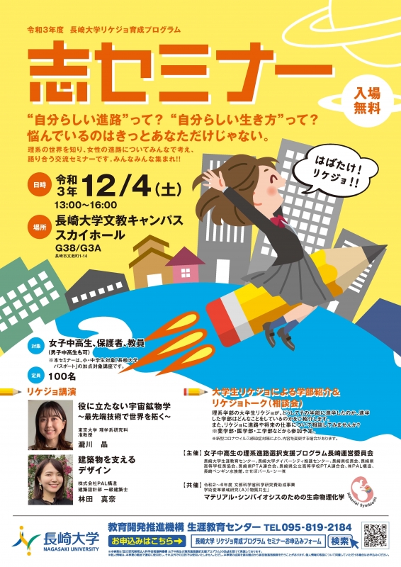 理系の世界を知り、女性の進路や働き方について考え語り合う 長崎大学「夢・憧れ・志を育むリケジョ育成プログラム」“志セミナー”