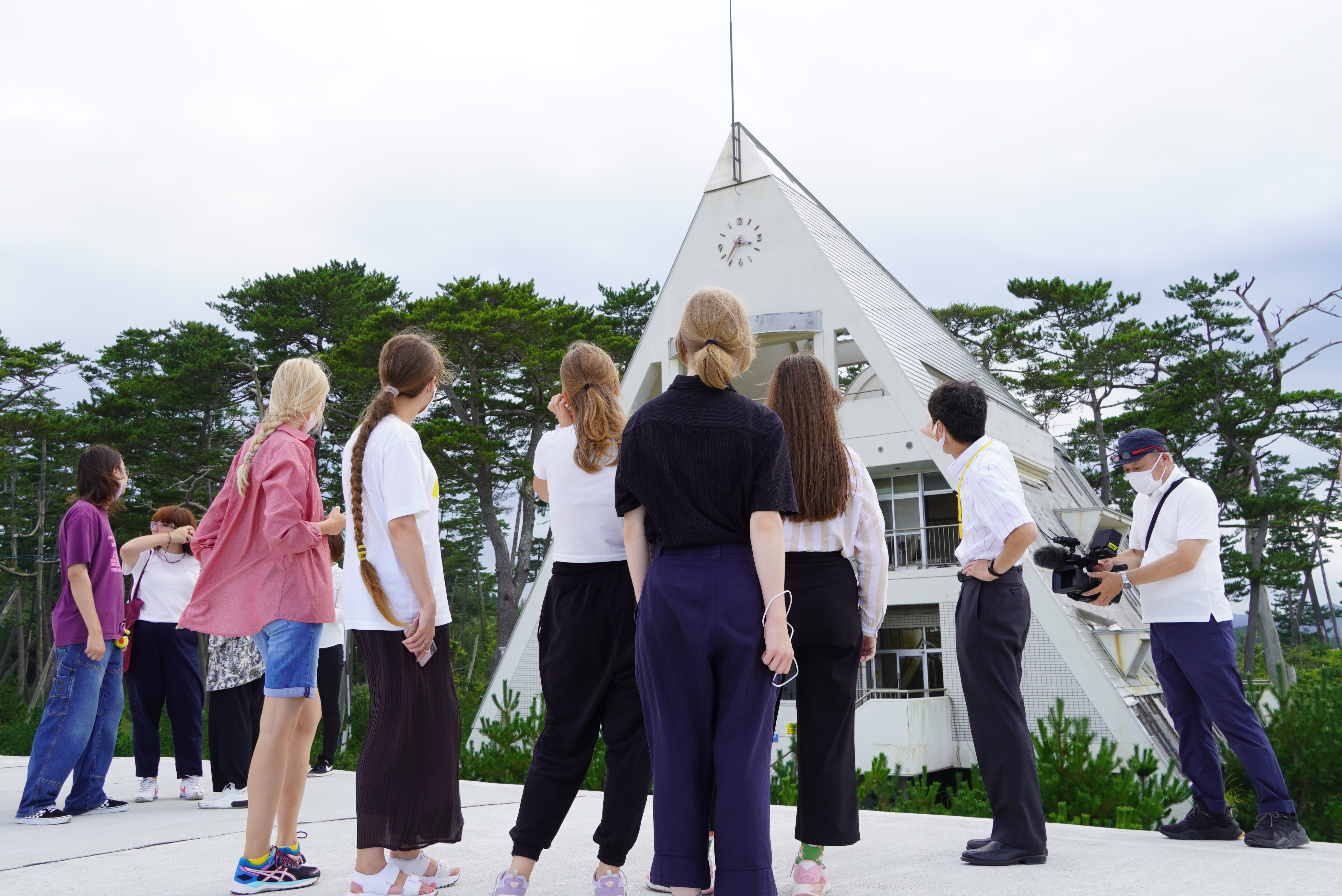伝承館では館長でもある高村先生のご案内のもと、地震・津波・原子力事故発生当時の記録映像や展示を見て回りました。高村先生の説明に真剣に耳を傾けながら、展示を見つめる学生たち。ウクライナの子どもたちから送られた「日本の友達、がんばってね」といったメッセージが書かれた絵画の前では、両国の温かい交流に少し笑顔を見せました。