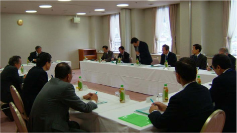 会議では,茂地工学部長が議長を務め,協議事項の「運営費交付金3%減の流れへの対応について」及び「大学院の教育・研究・組織運営の現状と課題について」等,各大学から取り組み状況の報告や工夫についての説明がありました。
