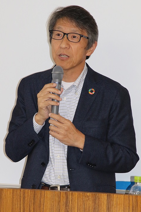 4月16日(火)の演習では、学外講師としてペットボトルや服のリサイクルにかかる独自技術を有する株式会社JEPLAN取締役執行役員会長の岩元美智彦氏が登壇し、同社代表取締役執行役員社長の髙尾正樹氏との出会いにはじまる起業の物語から、世界平和の実現に向けた国内外での事業展開、その過程における技術や仕組みの重要性について講義しました。多様な人々を巻き込み、社会に仕組みを埋め込むことに欠かせない「正しいを楽しいに」を体現した講義に、受講した学生はもちろん担当教員も引き込まれ、地域社会、特に長崎で環境について考える意義を強く認識する時間となりました。 |