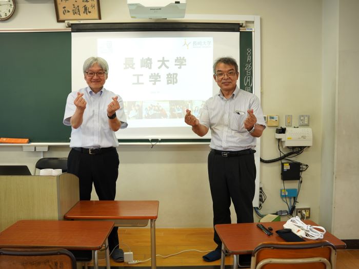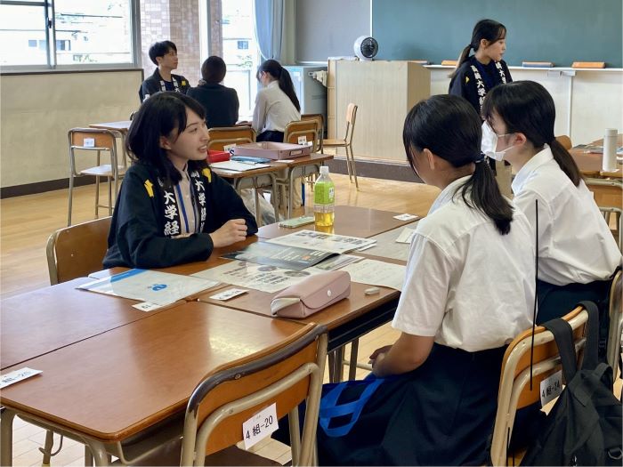 長崎大学は8月24日(土)に福岡県立城南高等学校で移動オープンキャンパスを開催しました。10学部それぞれが会場を設け、現役学生や教員が模擬授業や体験実習を行ったり、研究資料を展示したりして、学部の特徴や専門科目の魅力を伝えました。当日は城南高等学校の生徒はもちろん、それ以外の高等学校生や既卒生も訪れ、来場者総数は1648人でした。