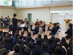 | 合唱を披露する漢陽初等学校の児童 | 演奏を披露する附属小学校の児童 |