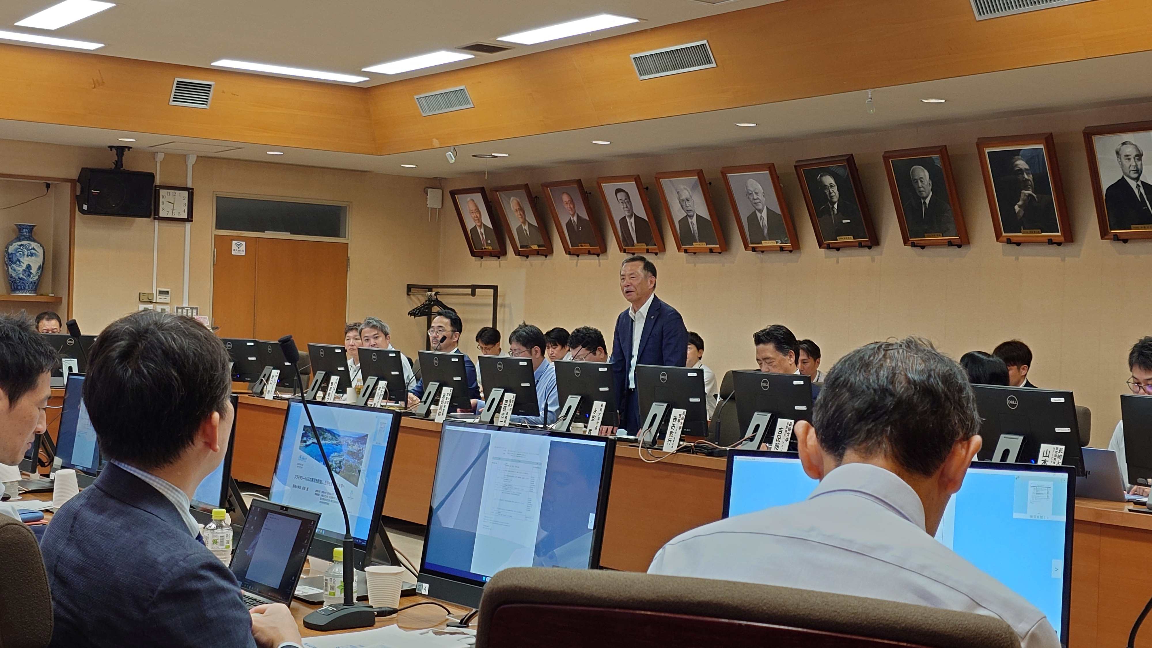 2025年9月10日(水)、長崎大学において、地域中核・特色ある研究大学強化促進事業(J-PEAKS)のサイトビジットが開催され、担当サポーターである宮浦千里先生や日本学術振興会の小谷和浩理事、ベントンキャロラインサポーターをはじめとする伴走チーム等、多くの方々が出席されました。本学は宮崎大学、鹿児島大学と連携して、本事業において、「プラネタリーヘルスの実現を目指し、世界を牽引する大学へ」というビジョンを掲げ、強みであるグローバルヘルス・グローバルリスク・グローバルエコロジーの3領域で超領域型融合研究を推進しており、永安学長から本学におけるJ-PEAKSの事業概要及び取組内容について説明があった後、伴走チームの方々との活発な意見交換が行われました。