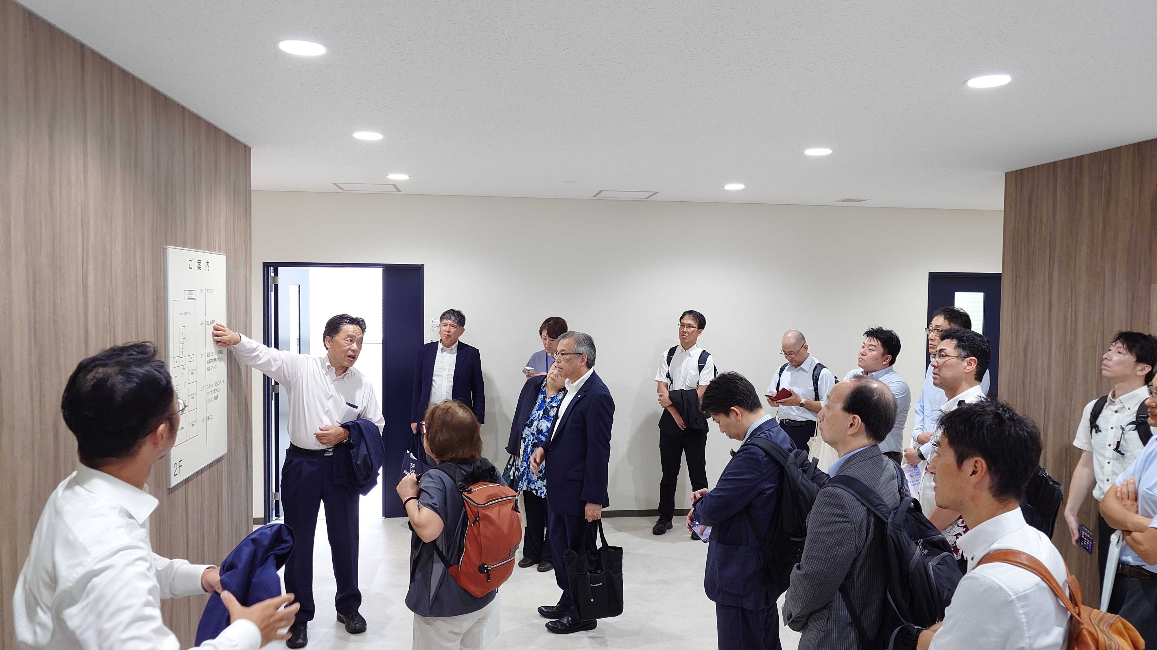 意見交換後、文教キャンパスのCROSS Nagasakiと坂本キャンパスの統合感染症研究棟の施設案内を行い、西田理事から今後の展望について説明がありました。