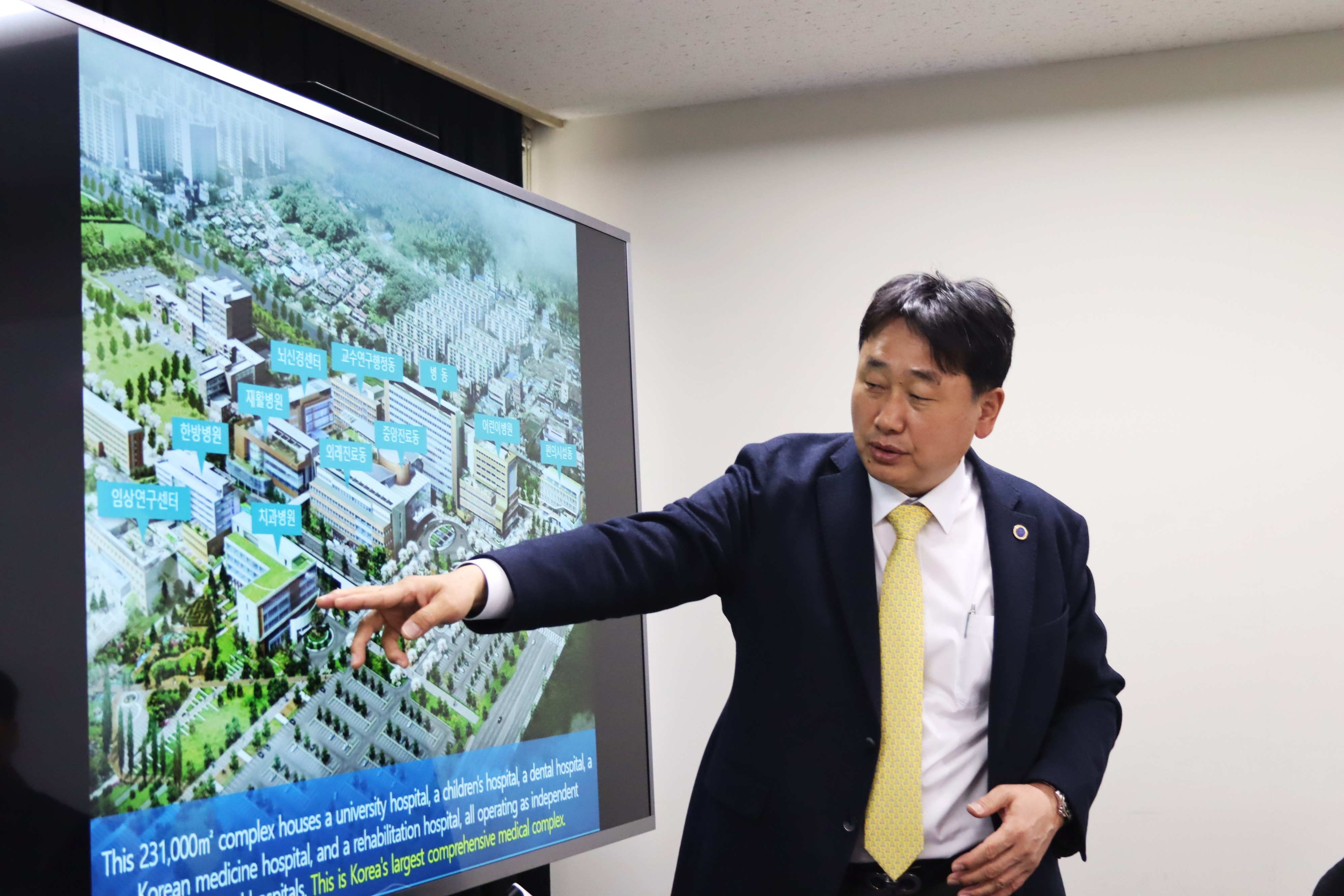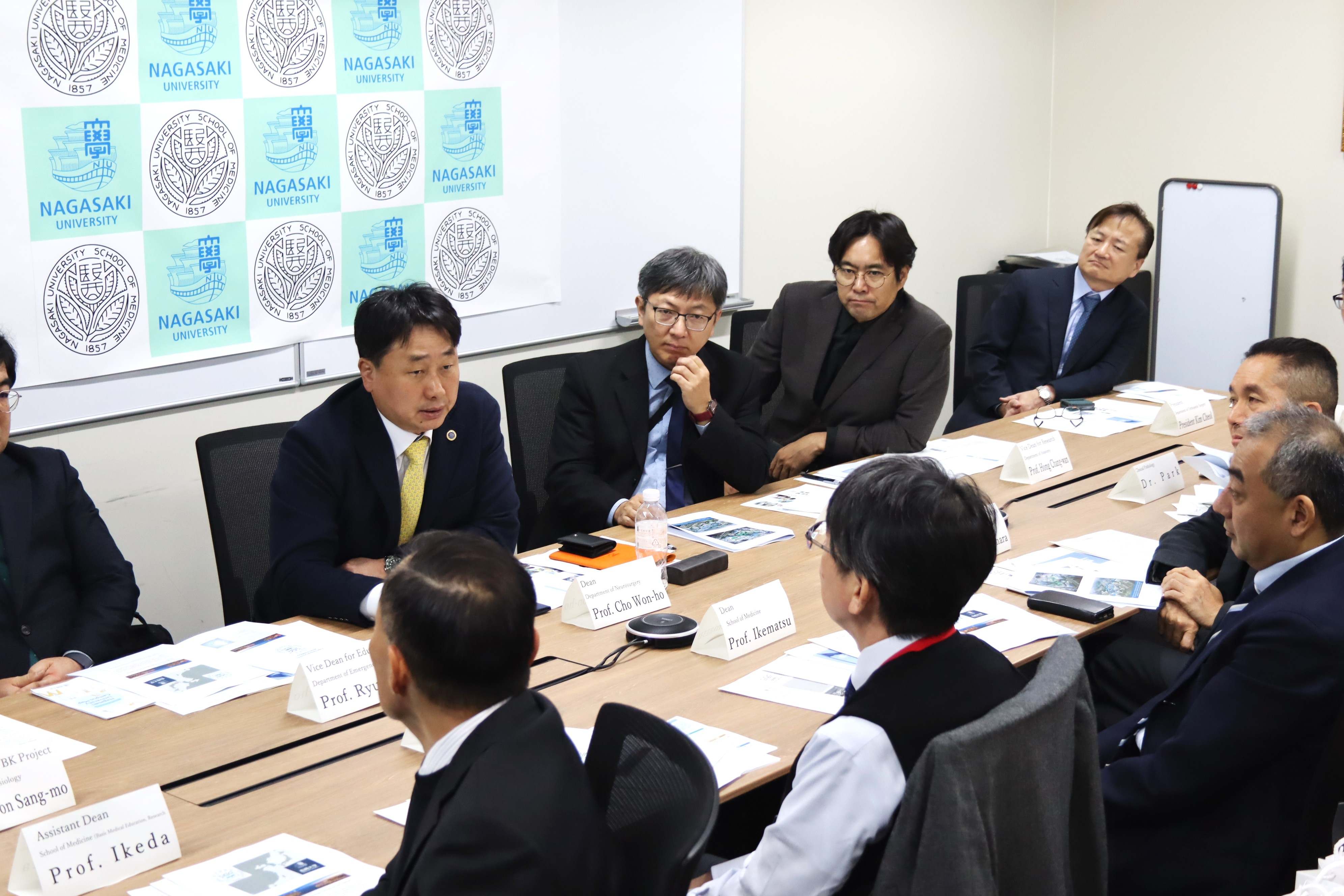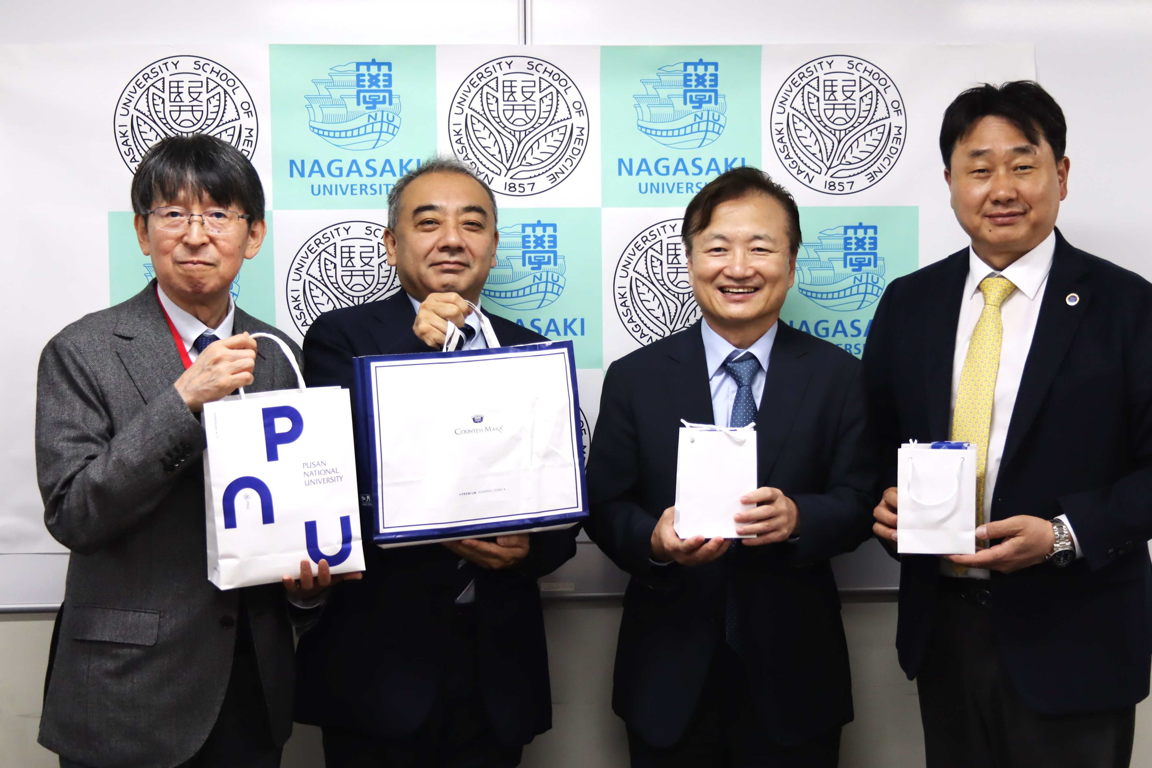 本学医学部と釜山大学校医学部は、長年にわたり学生交流プログラムを通じて強い関係を築いてきました。この度、釜山大学校医学部において、Cho Won-ho教授(脳神経外科)が新たに学部長に就任されたことから、交流発展の好機であるとして本学を訪問され、学生・研究交流の強化、共同学術会議の開催、そして同窓会間の交流促進についての協議を行いました。