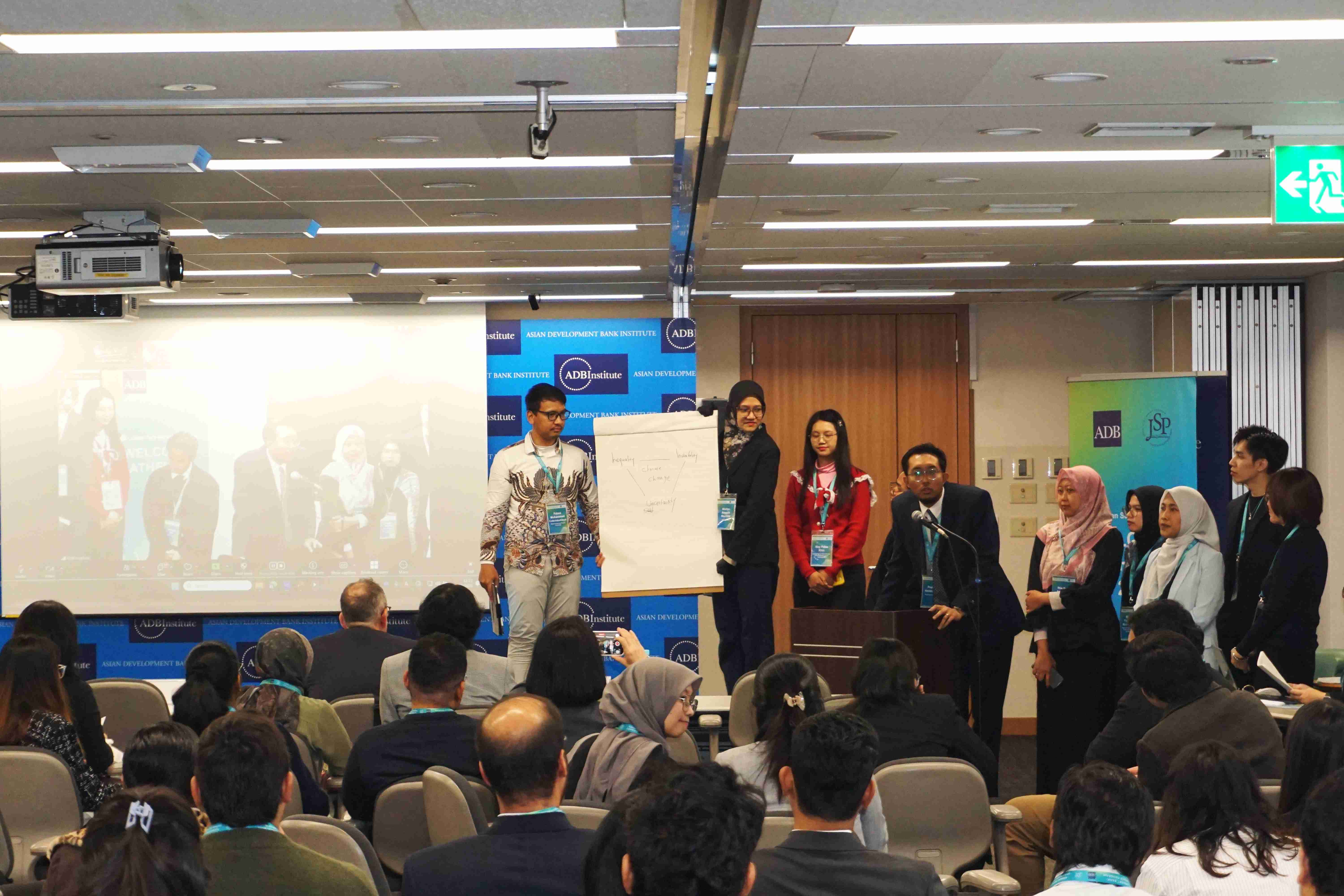 歓迎会のプログラムの一環として実施されたADB-JSP留学生のグループワークの様子 |