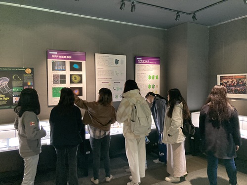 ・2日目:オリエンテーション後、薬学部施設見学を実施。下村脩名誉博士顕彰記念館では、ノーベル化学賞受賞に繋がった研究業績や展示品に強い関心が寄せられました。また、お薬の歴史資料館や薬用植物園では、伝統的な調剤道具や薬用植物について活発な質問がありました。