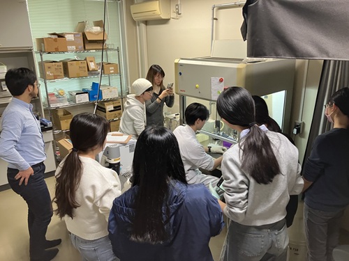 2025年12月7日(日)~12月13日(土)、台湾・台北医学大学薬学部から学部・大学院生7名と引率教員1名の計8名を招へいし、本学薬学部において研修プログラムを実施しました。台北医学大学とは大学間学術交流協定を締結しており、本学から学生を短期研修に派遣するなど、長年にわたり交流を続けています。