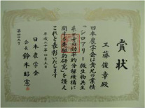 授賞式は同日,平成20年度(第79回)日本農学大会(東京大学山上会館)において行われました。