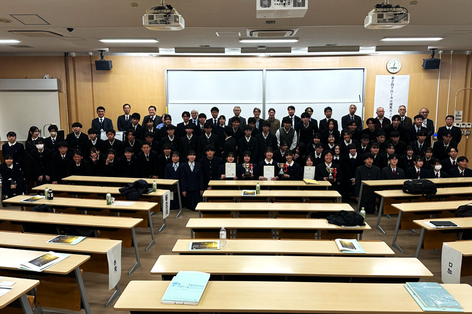 探究カップでは、この20グループをA部門、各学校の特色ある9グループをB部門として合計13校29グループが成果発表を行いました。成果発表会では本学の教員及び長崎県教育庁の職員が各グループの審査を行い、今年度はA部門から長崎北陽台高校「地域活性化班」、純心女子高校の「フジワラーズ」が長崎大学探究の芽賞を、B部門から佐世保西高校「フルーチェ」が長崎県教育委員会教育長賞を受賞しました。