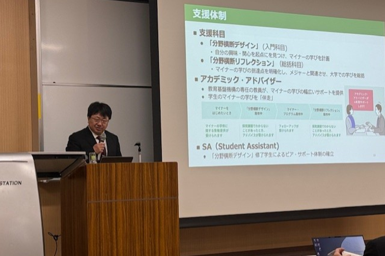 あわせて、本学人文社会科学域実践教育センターの野中陽一朗氏からは、生成AIを思考の外在化と再構成を支援する媒介として位置付けた学習プロセス設計モデルについて報告がなされ、本学における授業実践の試行事例が共有されました。