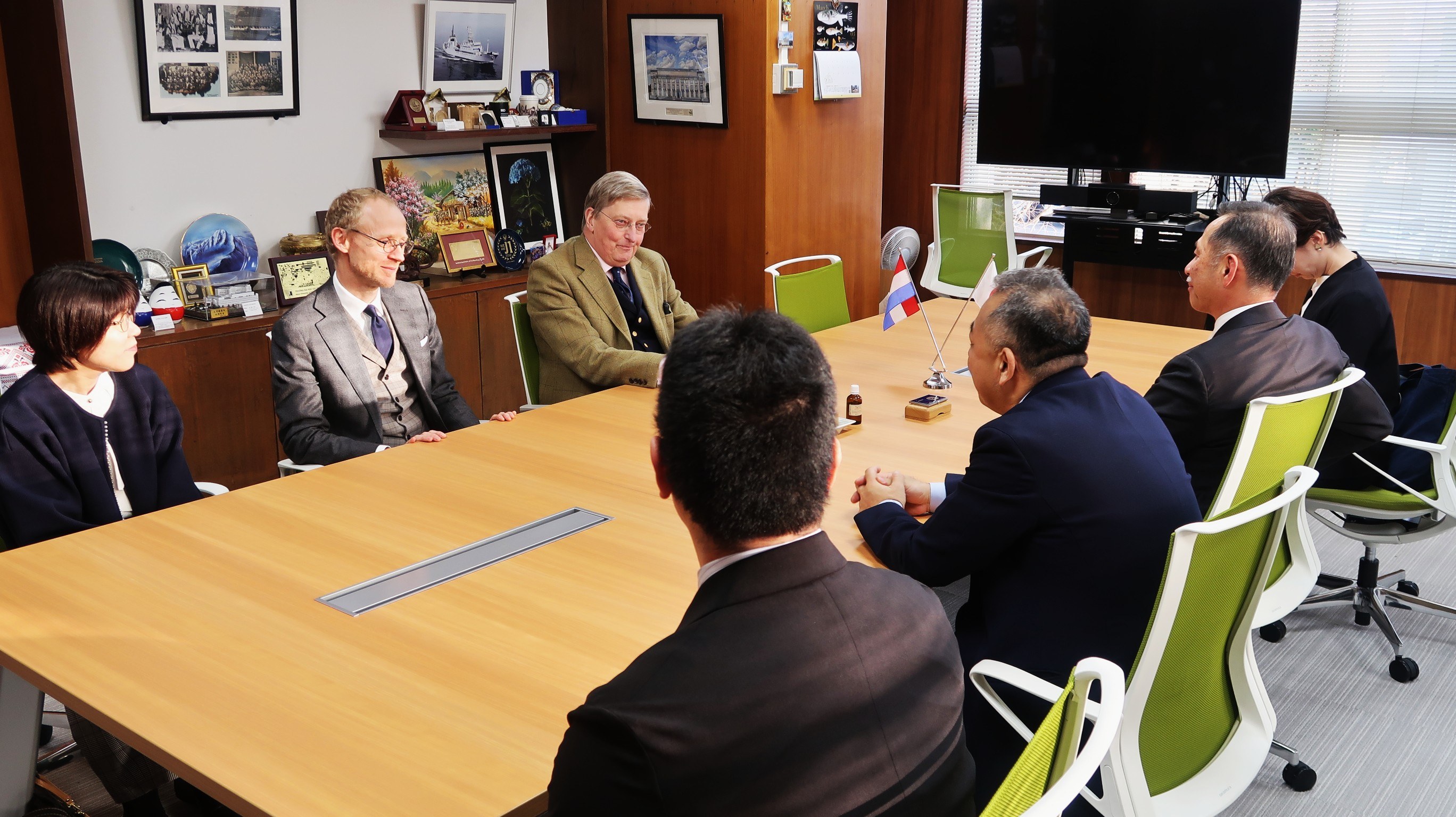 Hogendoorn教授は、3月20日(金)から27日(金)まで長崎に滞在し、本学教員との専門分野における議論や教育・研究に関する打合せを行いました。表敬訪問では、本学の教育・研究活動に関する紹介に加え、今後の連携の可能性について活発な意見交換が行われました。