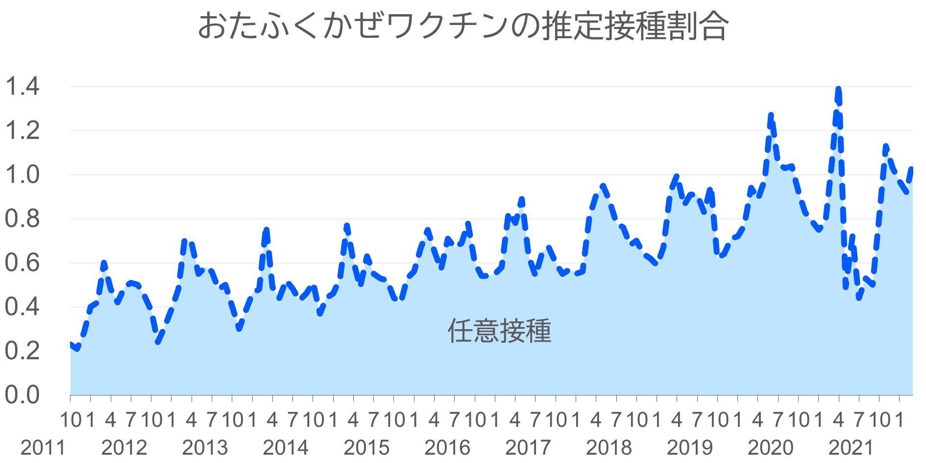おたふくかぜワクチンの推定接種割合は、2011年10月から2021年4月にかけてゆるやかに上昇していた