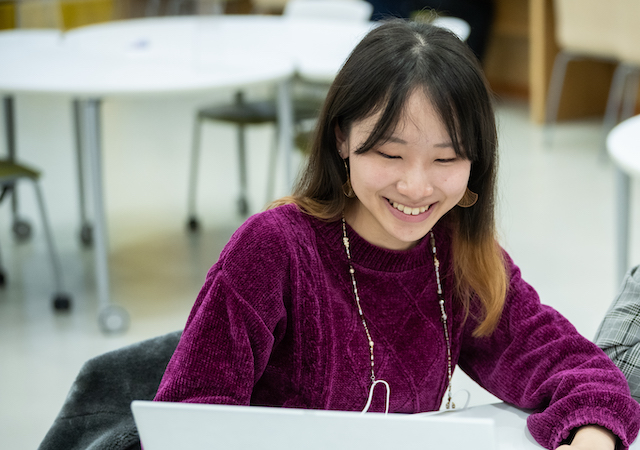 1・2年次の履修では基礎科目が中心ですが、プログラミング演習や情報工学実験などの実習では、舞台で応用できる学びも多く、視野が広がったそうです。将来の夢は音で人を感動させること。3年生になりさらに探究心が高まっています。